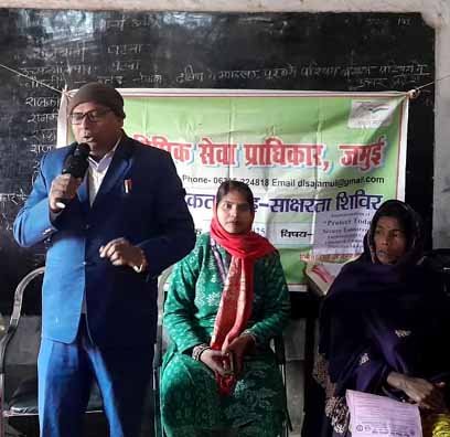Under the aegis of the District Legal Services Authority, Jamui, a legal awareness camp was organized at the Upgraded Middle School, Ward No. 21, in Kalyanpur village of the district. The awareness camp was conducted by Mr. Prasadi Shah, panel advocate of the District Legal Services Authority, and Para Legal Volunteer Mrs. Smita Kumari.
