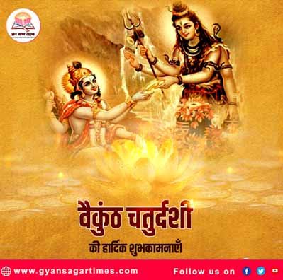 On this day, devotees take a bath in the morning observe a fast and worship Shiva and Vishnu. This day has special importance in the Kashi Vishwanath temple located on the banks of the river Ganges in Varanasi, and devotees offer lamps there. By offering lamps in the Ganges on the day of Vaikunth Chaturdashi, all sins are destroyed and one attains salvation.