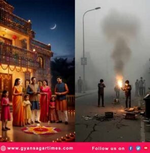 यह ‘धुआँआली’ सिर्फ हवा में नहीं, हमारे संस्कारों में भी फैल गई है. हम भूल गए हैं कि दिवाली ज्ञान, आंतरिक प्रकाश और सादगी का पर्व था. हमारी ‘आधुनिक’ भक्ति अब शोर, दिखावे और प्रदूषण की बैसाखियों पर चल रही है.