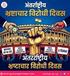 अंतर्राष्ट्रीय भ्रष्टाचार विरोधी दिवस हर वर्ष  09 दिसंबर को मनाया जाता है. यह दिन भ्रष्टाचार के खिलाफ जागरूकता बढ़ाने और इसे रोकने के लिए वैश्विक प्रयासों को प्रोत्साहित करने के उद्देश्य से मनाया जाता है.