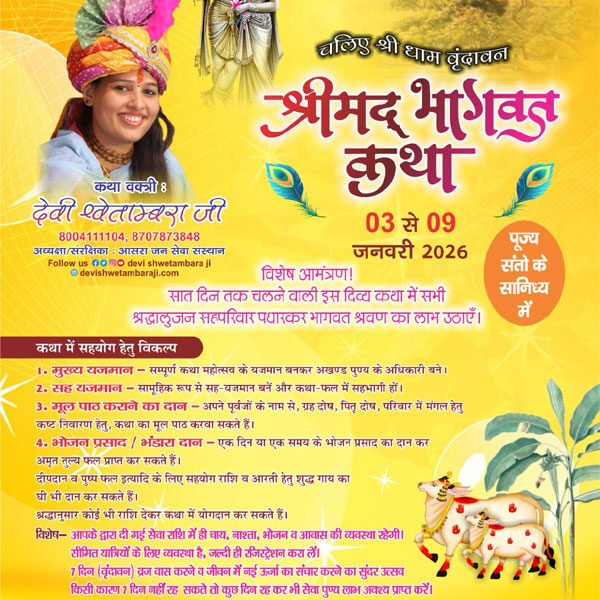 Read More »ग्राम नीरपुर, रुपस में 11-19 अक्टूबर तक श्रीमद भागवत कथा ज्ञान यज्ञ चल रहा है. संत वाल व्यास सुमन जी महाराज के…